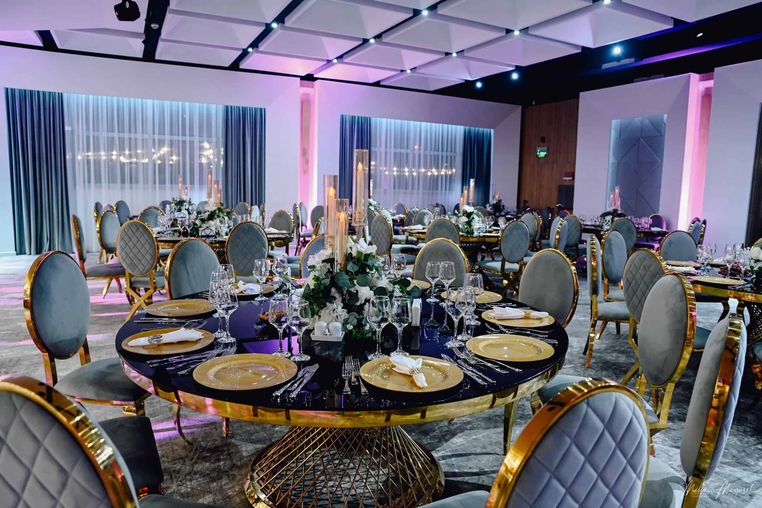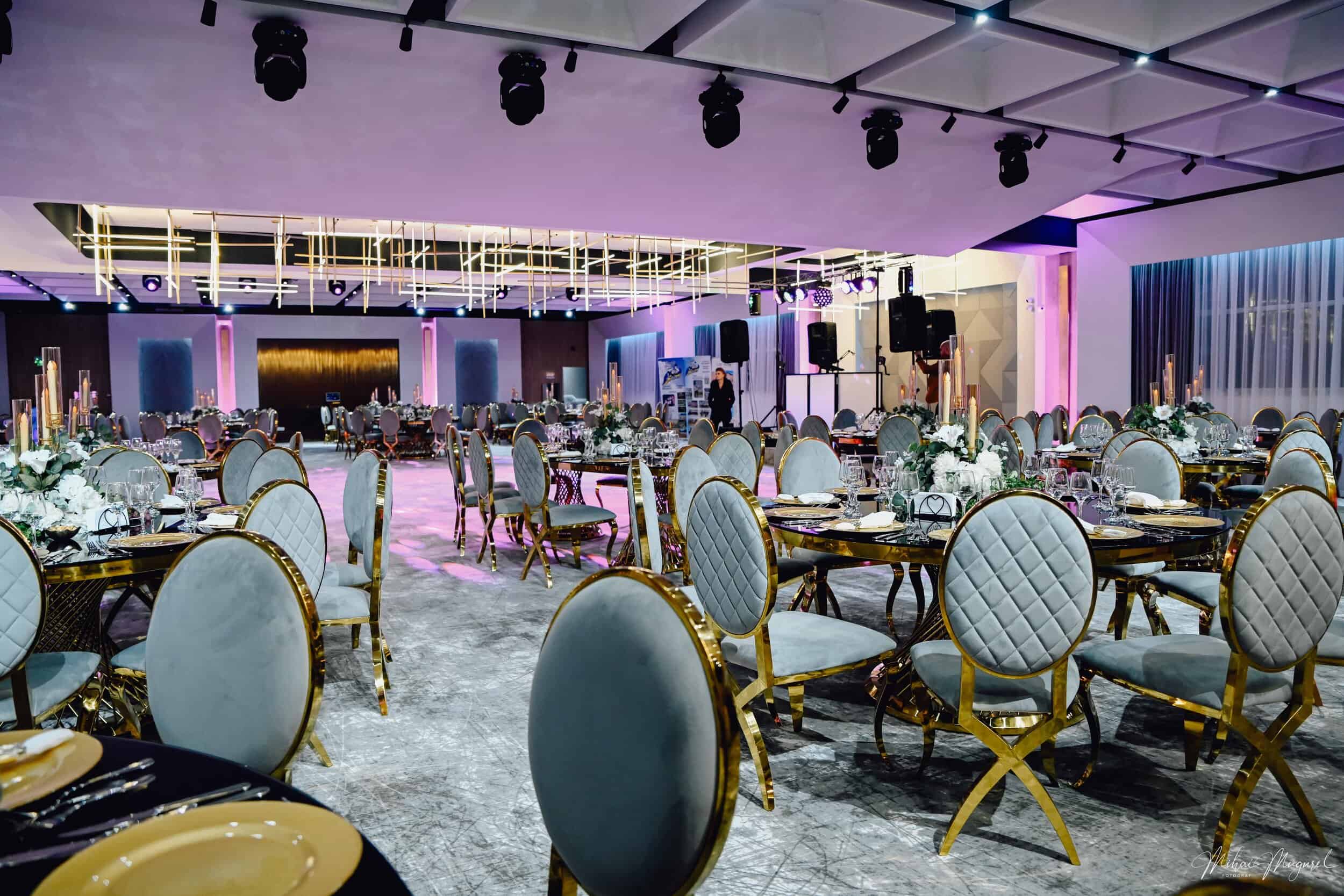 Cel mai amplu și spectaculos salon al complexului, creat pentru evenimente grandioase și seri de neuitat. Ideal pentru nunți mari, baluri sau petreceri corporate, spațiul impresionează prin candelabrele impunătoare, lumina caldă și ringul de dans generos. Fiecare detaliu, de la decorurile rafinate la acustica impecabilă, contribuie la o atmosferă elegantă, perfectă pentru momente de poveste și experiențe de neuitat.